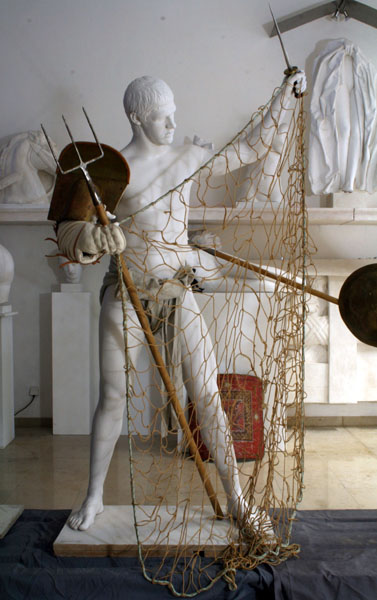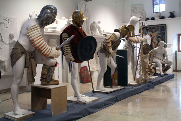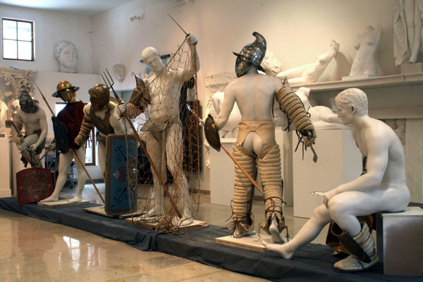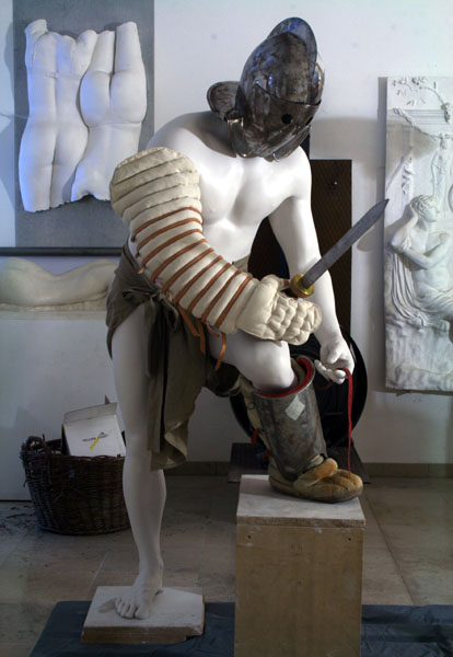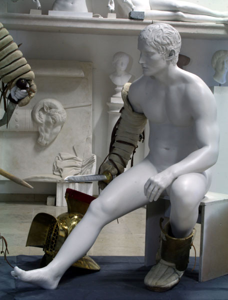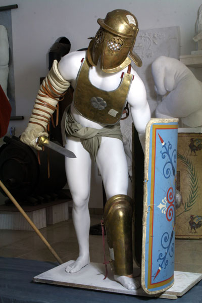 Gladiatoren für das Amphitheater in Xanten. Aufstellung Frühjahr 2012. Rüstungsteile aus den Beständen von Markus Junkelmann.